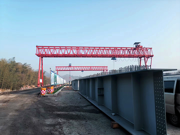 1、龍門吊主梁多數是分段運送到現場的。在現場進行對接組裝。組裝焊接后,查看幾許尺度。發現跨中拱度和懸臂起翹有不同,需當即調整跨中拱度和懸臂起翹的數值。
