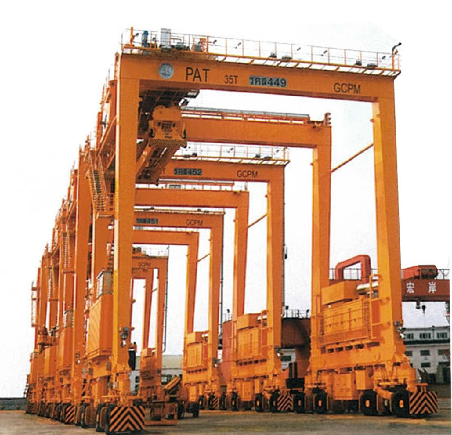 江蘇連云港港口輪胎吊廠家輪胎門式起重機是在原有起重機的基礎上生產的,可以承載較大符合的物件,采用獨特的設計工藝,不但牢固可靠,并且安裝的時間較短,使用起來較為方便。輪胎門式起重機是用于貨場或路橋施工中進行堆碼、轉運、鋪設作業的機械。它由門型支架,動力傳動系統、起升機構、大車運行機構等組成,輪胎式行走機構可使起重機在沒有鋪設軌道的情況下自由行走,并可作轉向,作業靈活。使用方便。輪胎式門式起重機用柴油機交流發電機組供電,可在沒有鋪設道軌的場地內作兩個方向移動。支承在大型無內胎輪胎上。輪數是根據場地輪壓的要求而設計的。整臺設備在駕駛室里操控。