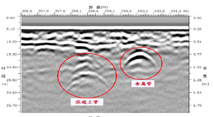左側為混凝土管雷達圖像,右側為高亮金屬管雷達圖像